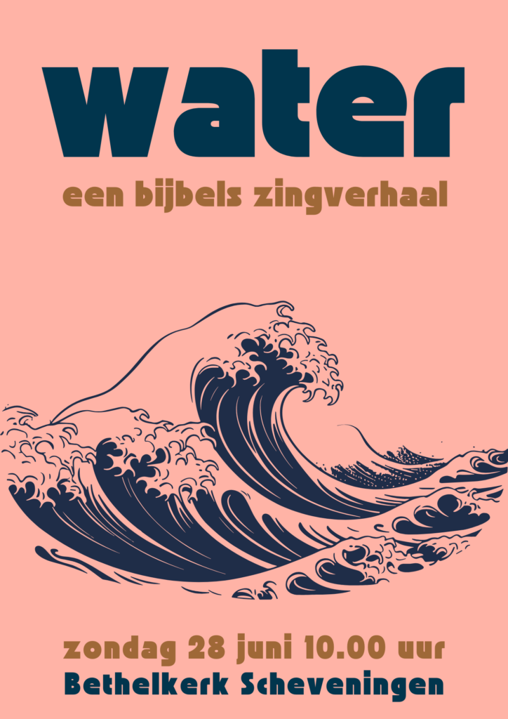 Water – een bijbels zingverhaal Water, water, water. Overal woest water. Daar begint het mee in de Bijbel. Later lees je er over stormen, over mensen die opgevist worden en over lopen op het water. Op de laatste bladzijde is de zee niet meer woest maar zo glad als een glazen spiegel. Bij het zingverhaal ‘Water’ leer je de waterverhalen uit de Bijbel beter kennen aan de hand van liedjes. Tijdens oefenmomenten ga je deze zingen in een projectkoor. Daarna volgt de uitvoering op een zondagmorgen, met muzikanten, zangers en met een mooi decor. Een unieke kans voor kinderen en tieners om te zingen. De liedjes werden geschreven door Monique Harteveld. Zij is dirigent van een Schevenings kindertheaterkoor. Ze schreef al twee keer eerder een prachtig bijbels zingverhaal: ‘De Kinderpassie’ en ‘Niets is onmogelijk’. Oefenen: zondag 7 juni & zondag 14 juni l 12.00 – 14.30 uur (met lunch) Generale repetitie: vrijdag 26 juni l 19.00 – 20.00 uur Uitvoering: zondag 28 juni l 10.00 – 11.00 uur Locatie: Jurriaan Kokstraat 175 l Scheveningen Op zondag 21 juni van 12.00 uur – 13.30 uur organiseren we samen met het Haags Kunstatelier een workshop waarin we werken aan het decor. Ook hiervoor kun je je aanmelden. Enthousiast? Meld je aan (ook als je niet alle keren kunt) bij Karina Kolk: zingverhalen@bethelkerkscheveningen.nl Programma 28 juni 2026 Programma 30 maart 2025 Programma 30 november 2025